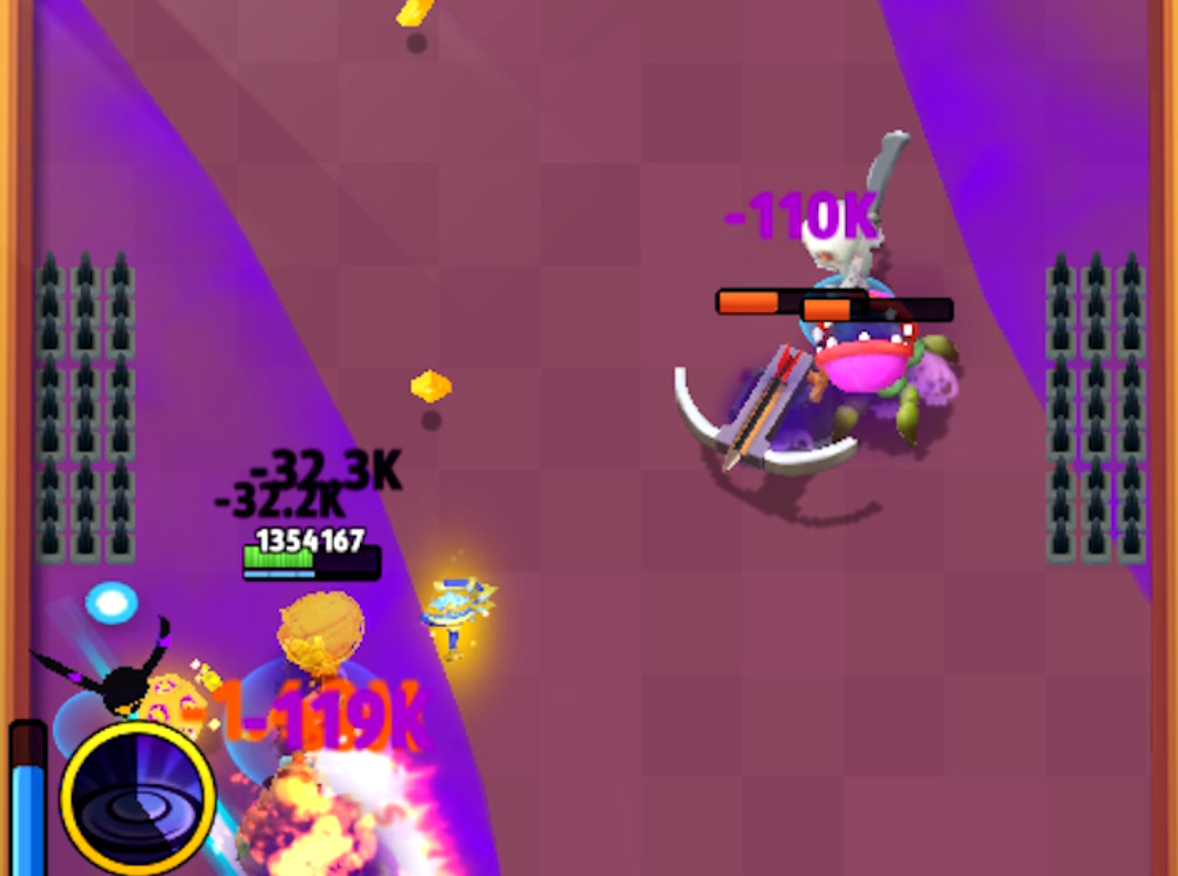 刀や大剣などの近接攻撃は障壁の反対側にも届くほか、一部のヒーロー・衣装・武器では1マスの壁越しに遠隔攻撃ができる。悪魔スキルなどにより障壁の中へ入れば、敵の弾を消しつつ自分の弾は発射が可能(ストライクはほぼ出ない)。敵側にも障壁を通過できる赤い弾やレーザー・火炎などを放つものがいる。壁越し攻撃に関しては「戦闘」も参照。