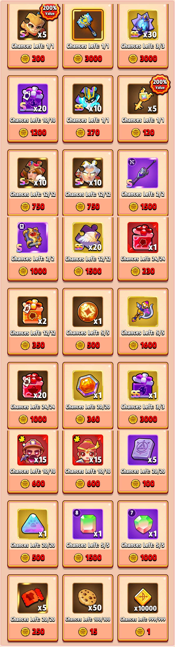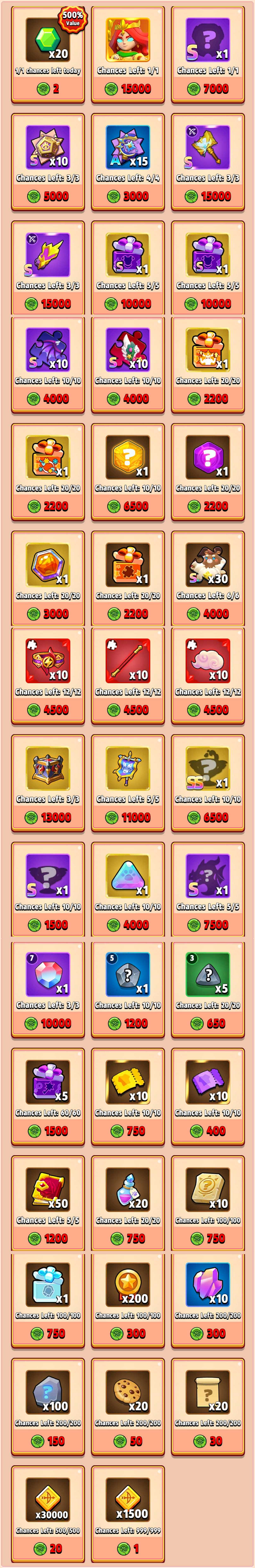 秘宝箱報酬プレビュー