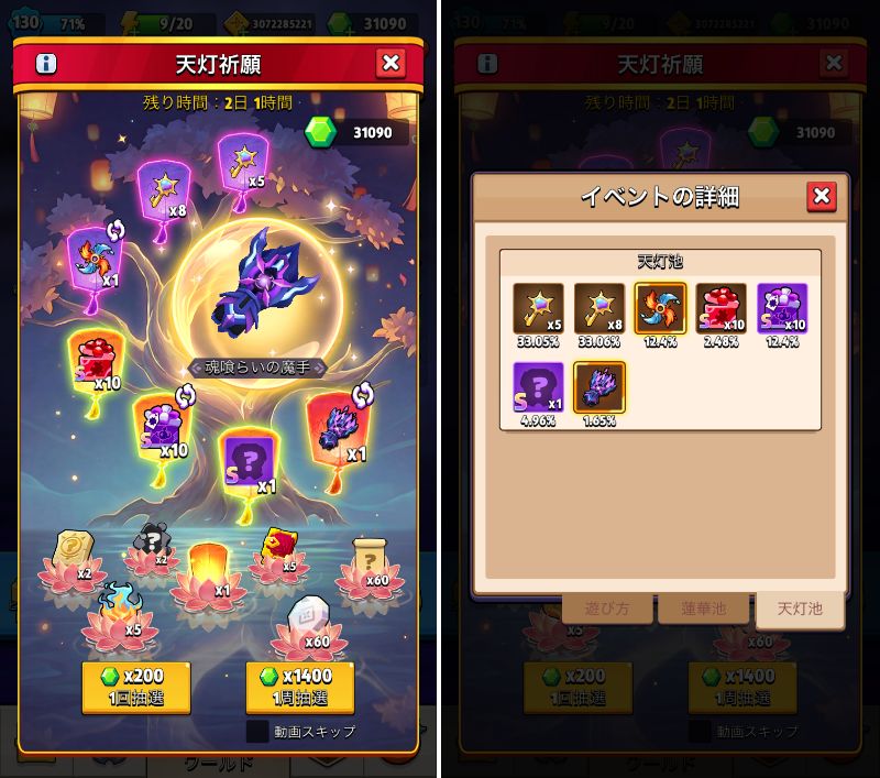 天灯祈願(Skylight Wish)は2026年1月に登場したルーレット系のイベント。ミッションやパックなどはなくジェムだけを使う。