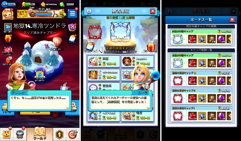 などの対策を取り、何度かトライすれば(よほど低スペックな端末でなければ)クラッシュせずに越せる時が来るはず。さらにレベルが進むと、強化された神器がモブを瞬殺してしまうためクラッシュも起きにくくなる。
