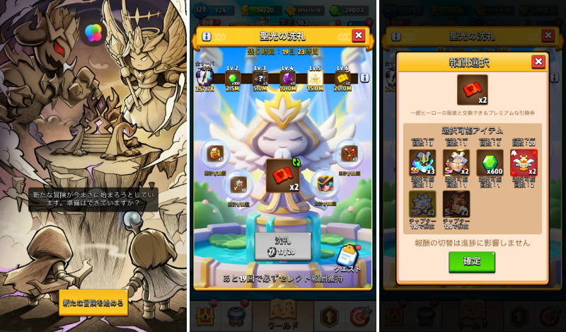 ショップのボックスや行商人の装備などを買うなら、このタイプのイベント開催時を狙いたい。ヒーローや牧場スロットの解放、装備のリセットなどのジェムがかさむことも可能な範囲でこれに合わせると良い。ただし、直後にログイン報酬プレゼントが開催されることが多いのでジェムの減らしすぎには注意。