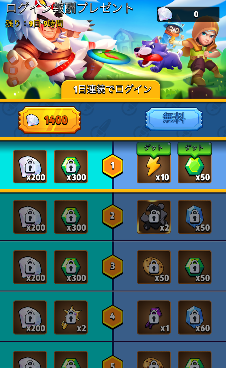 開催期間中は1日1回、10ジェムだけ無料でもらえる。