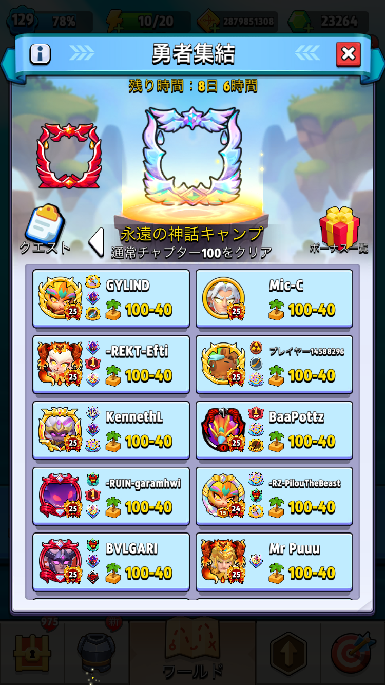 勇者特権(Brave Privileges)は2022年10月のアップデートで追加された新しいログインボーナス的な要素。メイン画面のアバターからアクセスできる。特権のレベル(等級)に応じて毎日デイリーボーナス(ボックス)がもらえるほか、各種のバフも得られる。