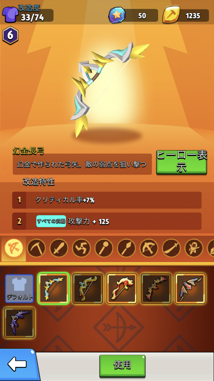 | 弓 | 幻金長弓 | クリティカル率+7% すべての武器:攻撃力+125 |