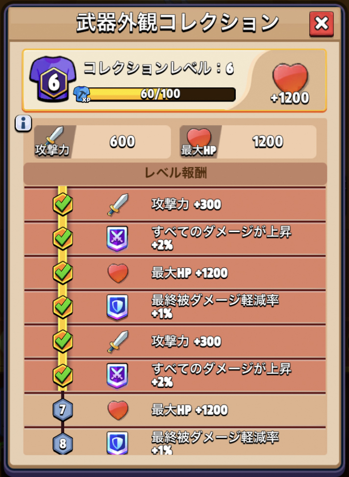 | 7 | 最大HP+1200 | 37 | 攻撃力+600 |