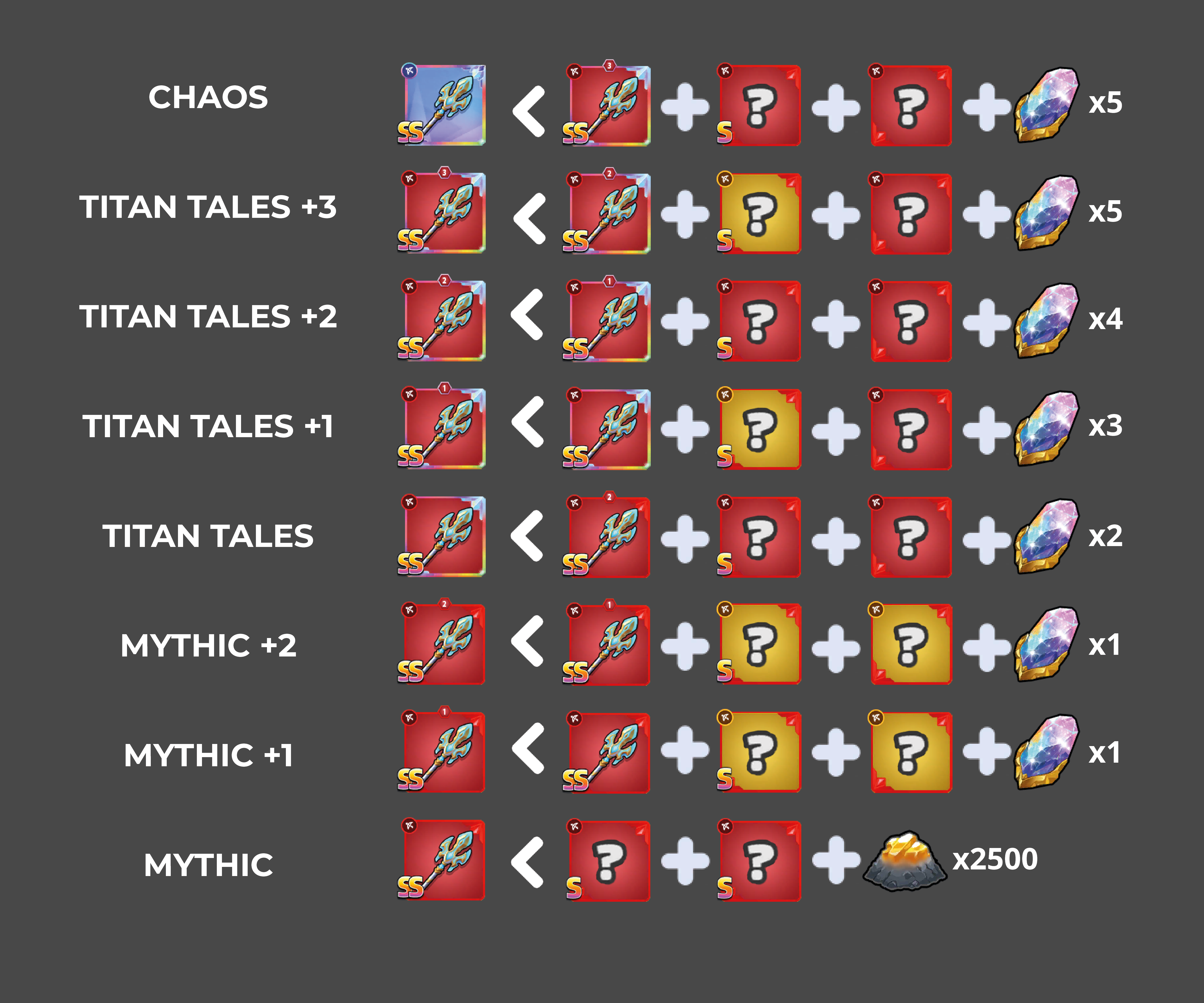 S級装備の実装と同時に、ミシック以上の通常装備を全てミシックまでダウングレードできるようになったので、最終的には既存の装備は全てS級装備のグレードアップに使えということだろうか。あるいは、かねてより祭壇・精錬などに回す装備不足が指摘されていたので通常装備はそちらへ回せということかもしれない。